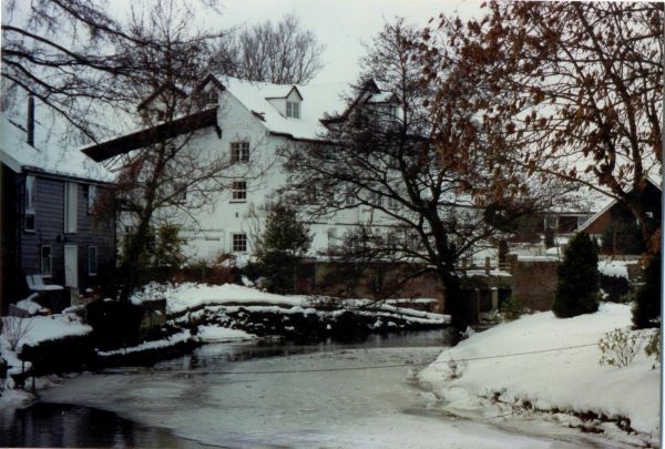 Ellingham Mill in snow with Shute (Sharon Raven)